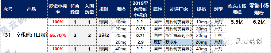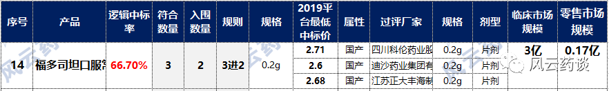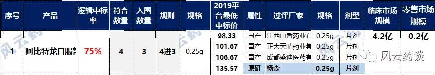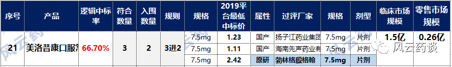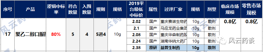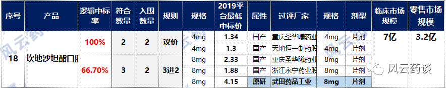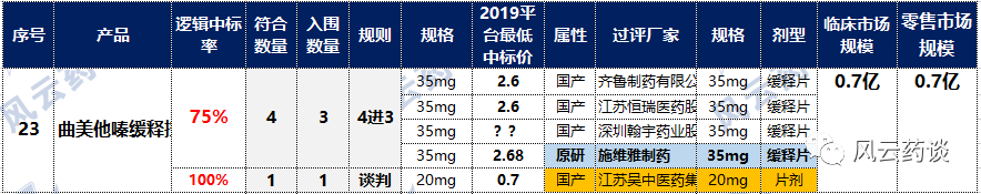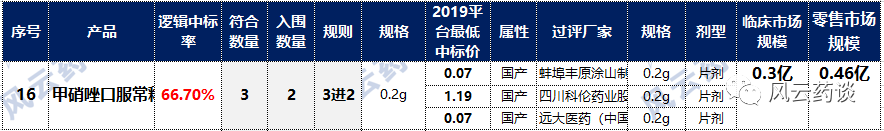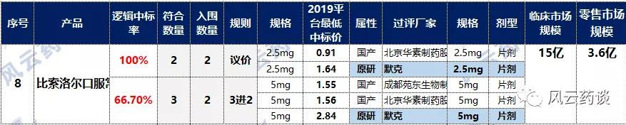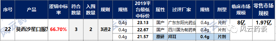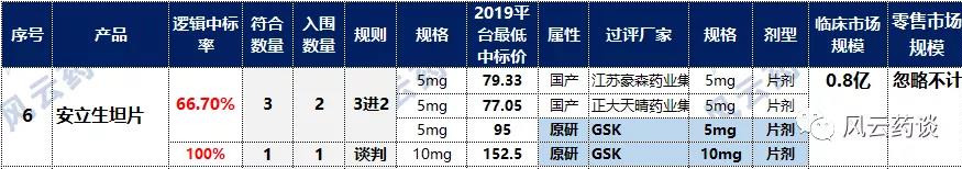 簡(jiǎn)評(píng):價(jià)格差距不大、遇到國(guó)內(nèi)兩個(gè)大咖,GSK壓力很大啊,并且10mg規(guī)格的安立生坦銷(xiāo)量并不是很好,最終很有可能就是3進(jìn)2,沒(méi)有10mg獨(dú)家中標(biāo)的可能。從規(guī)模上看,屬于本輪比較小的產(chǎn)品了,不過(guò)螞蚱也是肉,企業(yè)發(fā)展也是需要花錢(qián)的。