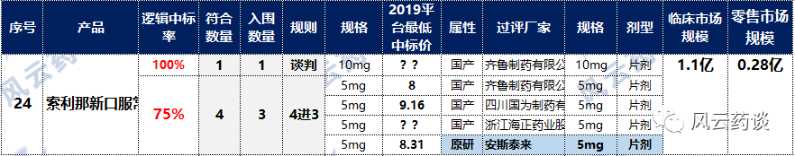 價(jià)格差距還是有一些的,如果默克想在2.5mg上中標(biāo),那么勢(shì)必要在5mg的價(jià)格上下功夫,苑東和華素都不能掉以輕心啊。